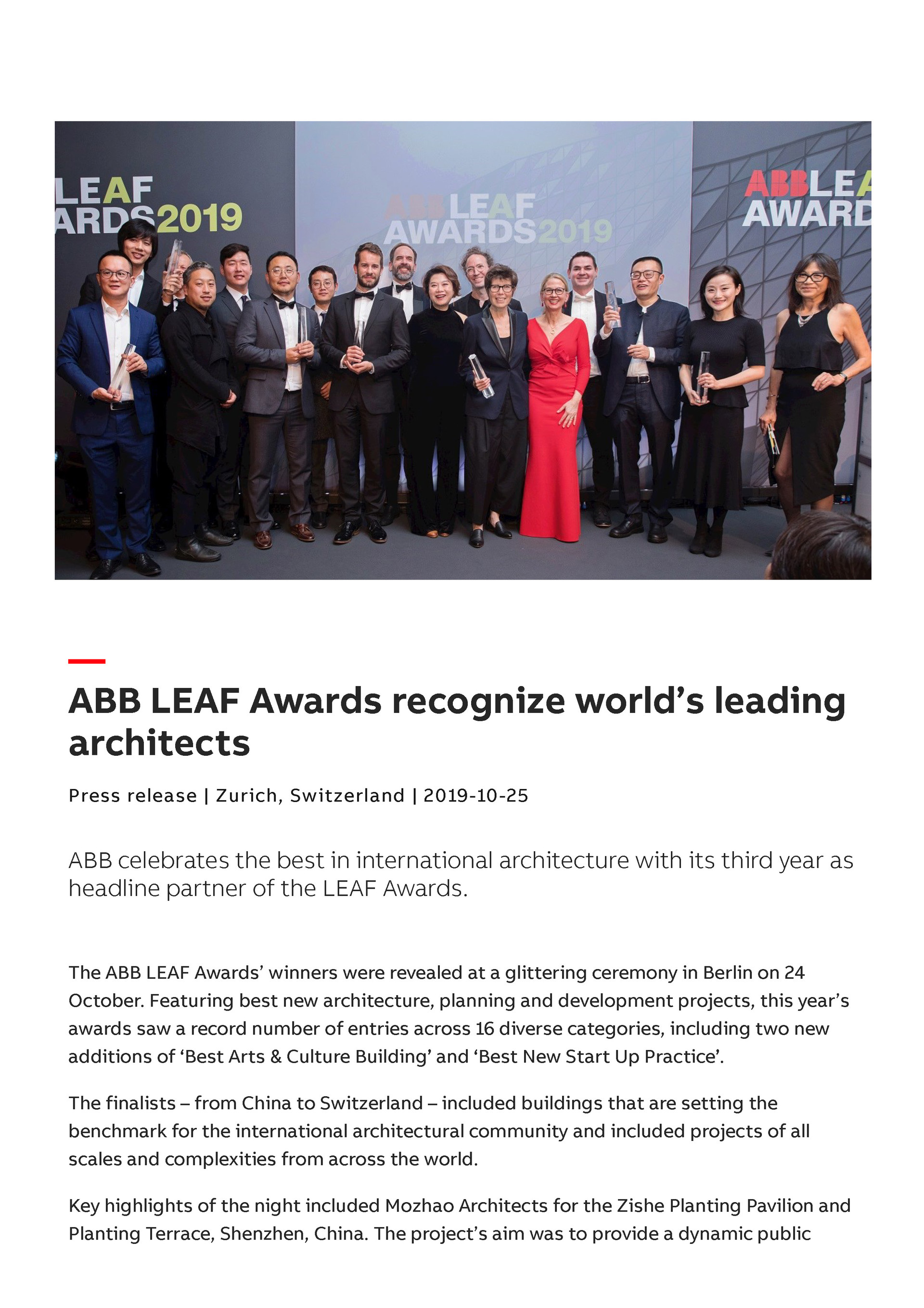 이 상은 2001년에 시작되어 지금까지 세계 최고의 새로운 건축 계획 및 개발 프로젝트를 선정하고 시상하고 있다.
