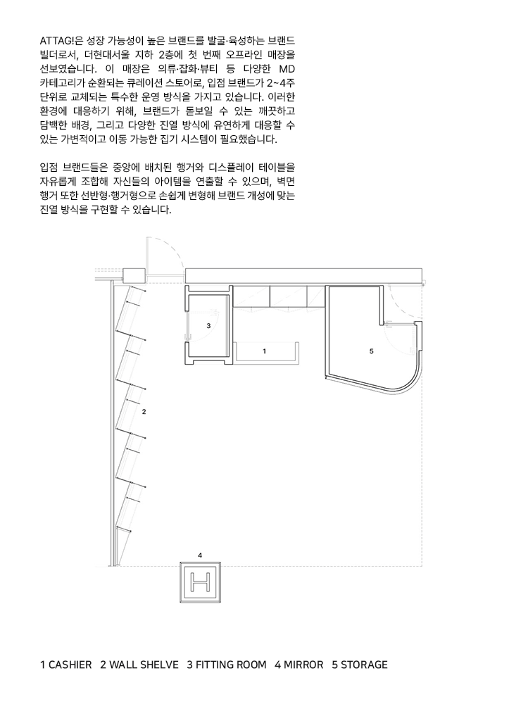 maoom 은 공간 전반의 기획설계를 담당하여, ATTAG! 의 브랜드 개념이 효과적으로 구현될 수 있는 방향을 제안했습니다.